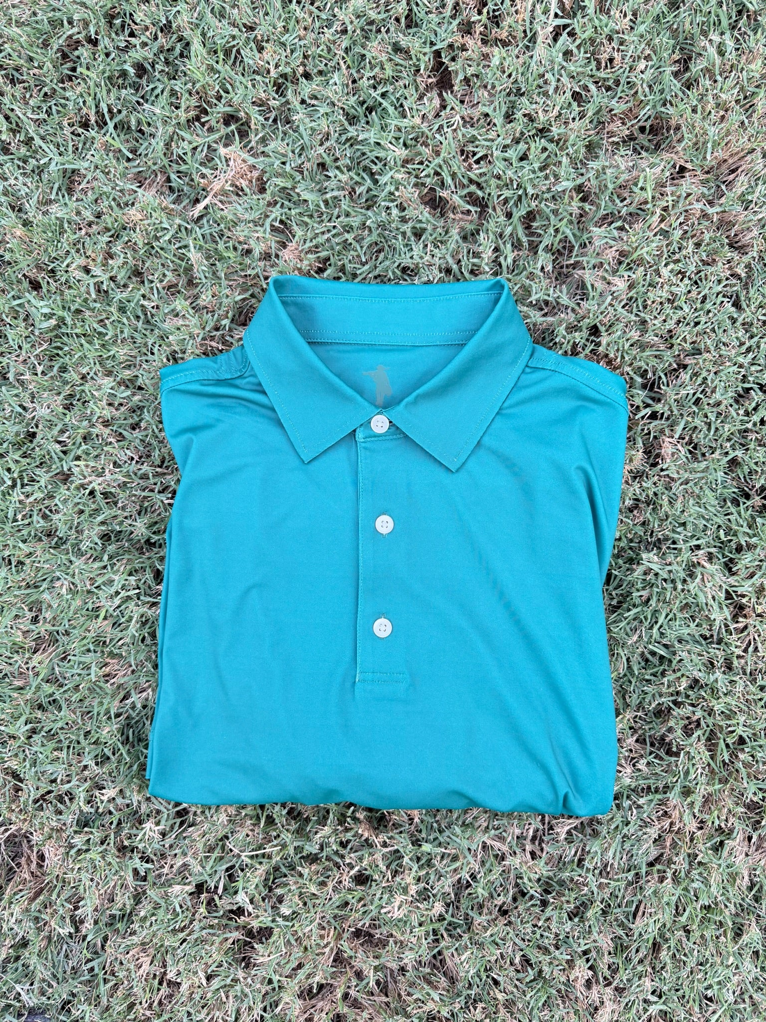 Bring a fresh edge to your game with the “Emerald” Polo. Featuring a rich solid emerald-green color, this polo delivers clean style with a bold pop that stands out on and off the course.