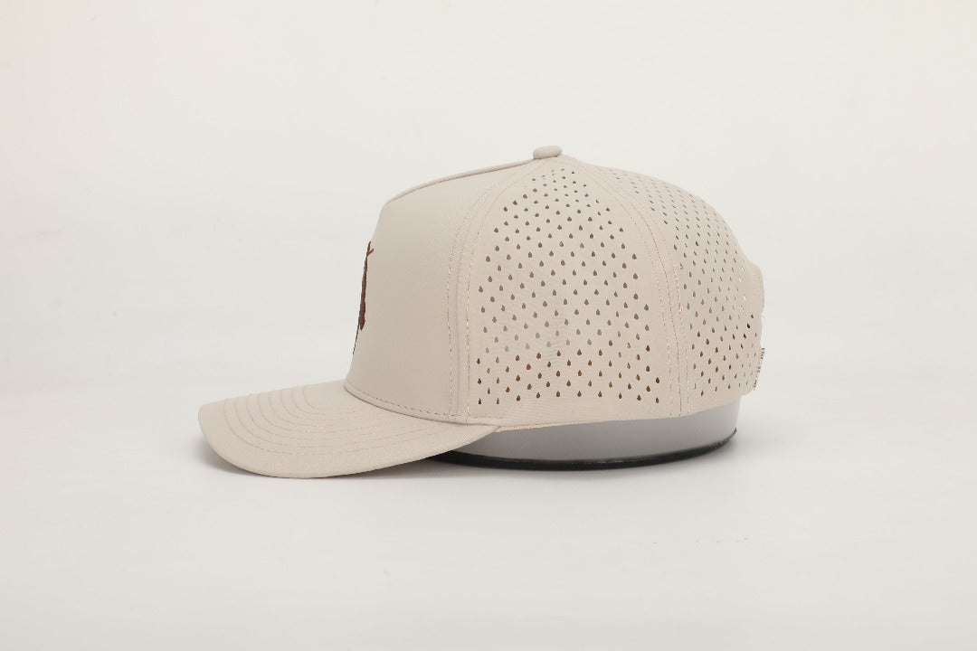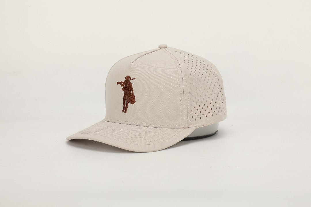 Crafted from water-resistant performance fabric with laser-cut ventilation and a structured fit, the “Sandstone” provides breathable comfort and durability whether you’re on the course, out in the desert sun, or keeping it casual around town.