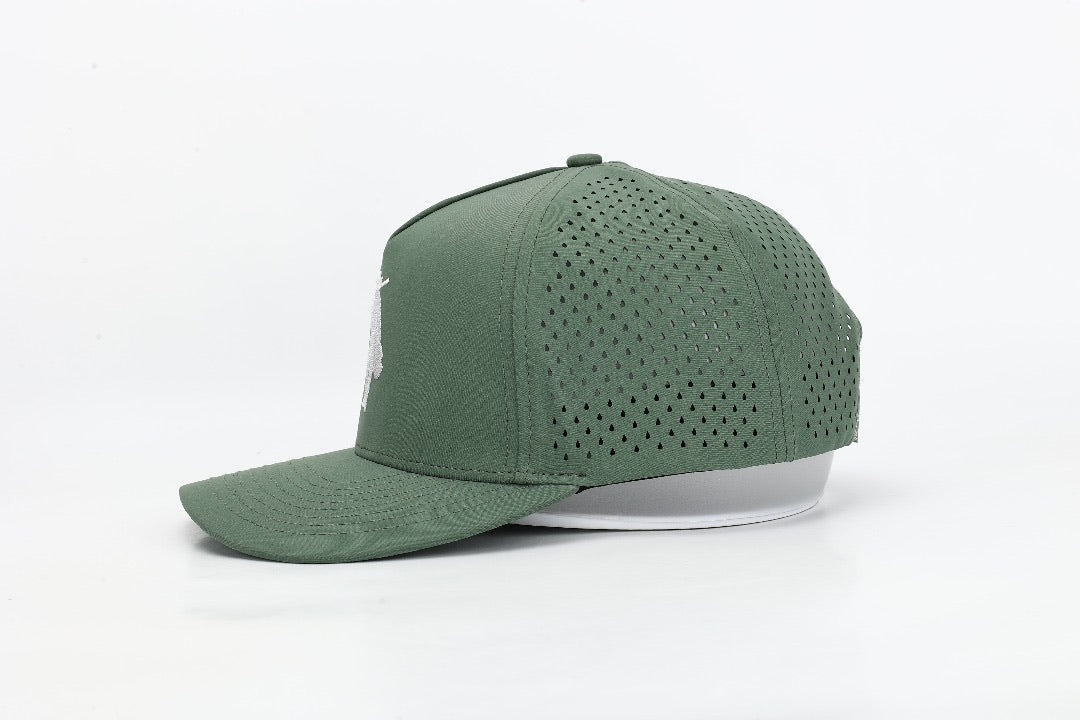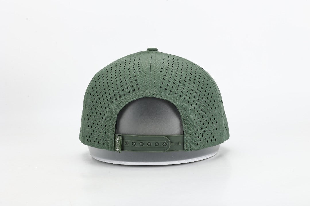 Meet the "Wintergreen" hat by Thomas Adams Apparel – a clean-cut performance hat crafted for those who value comfort, breathability, and understated style. Designed in a smooth sage green tone, this structured 5-panel cap features a laser-perforated back for enhanced airflow and all-day wearability.
